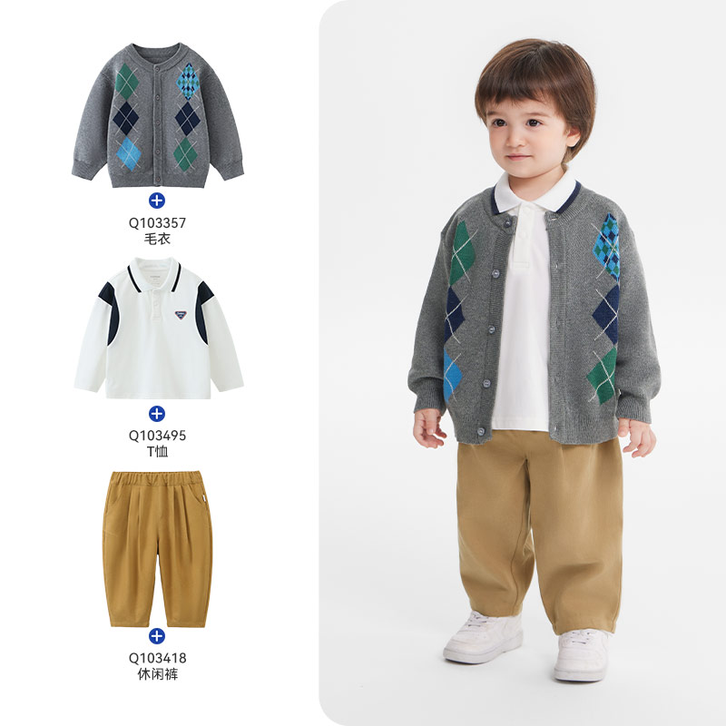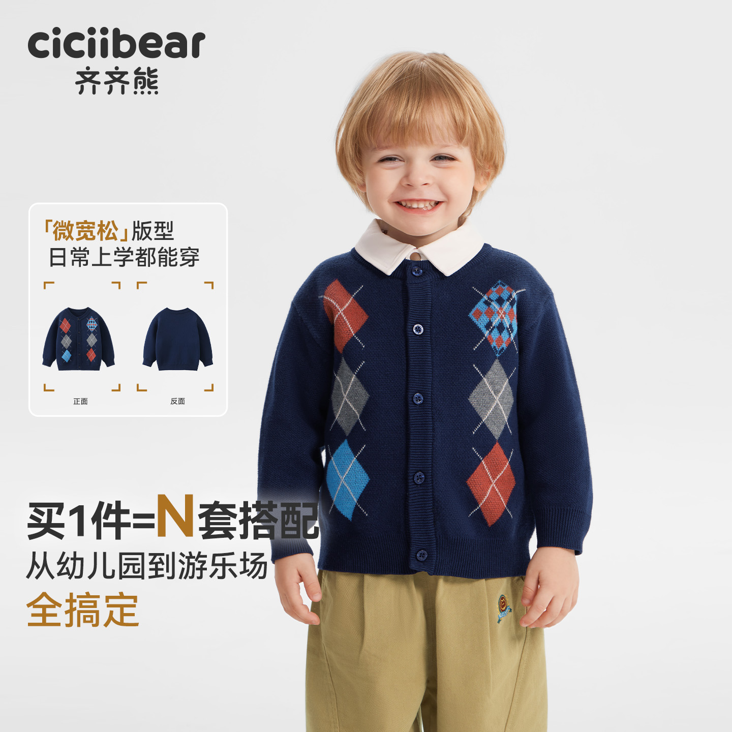 毛衣春秋款 齐齐熊男童开衫 宝宝入院服儿童针织 抗起球静电学院风