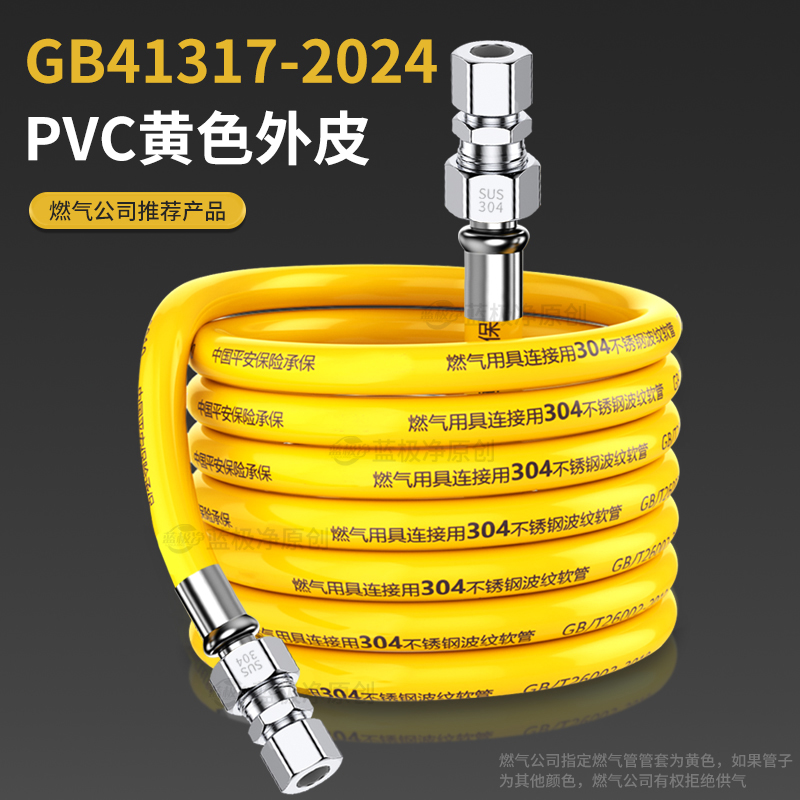 2025新国标燃气管天然气软管304不锈钢波纹管煤气灶防爆专用连接