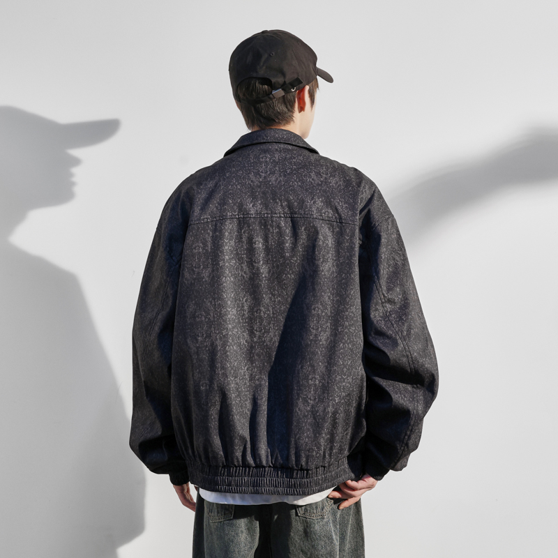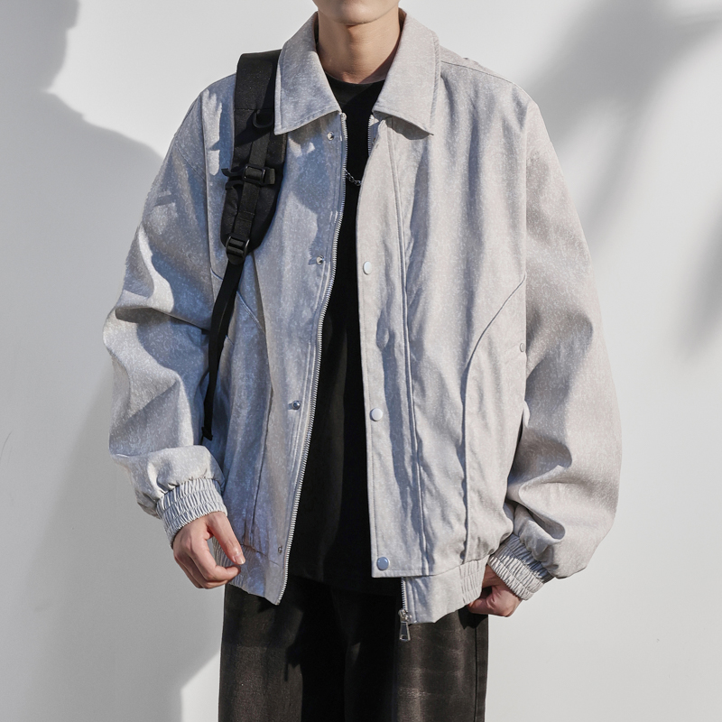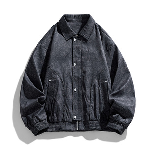男装 翻领机车夹克外套宽松帅气大码 加肥加大胖子新款 宸轩2025秋季