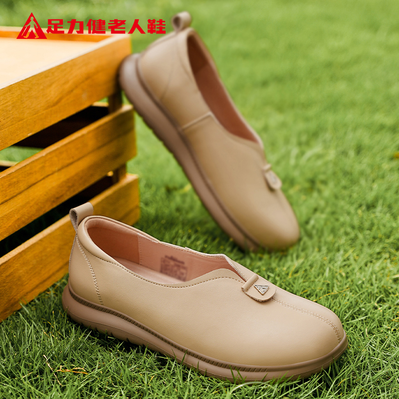 一脚蹬软底轻便百搭女士乐福小皮鞋 足力健老人鞋 新款 2025秋季 正品