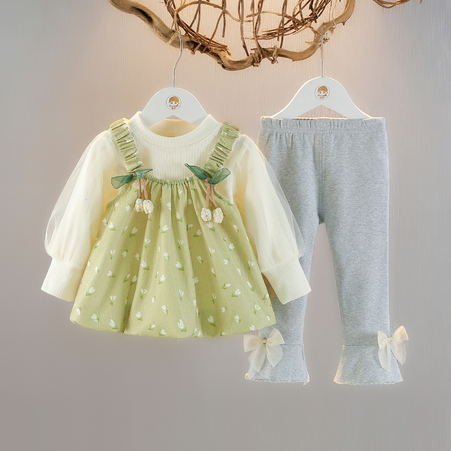 套装 女童套装 儿童洋气时髦背心裙三件套女宝宝秋装 2025新款 春秋款
