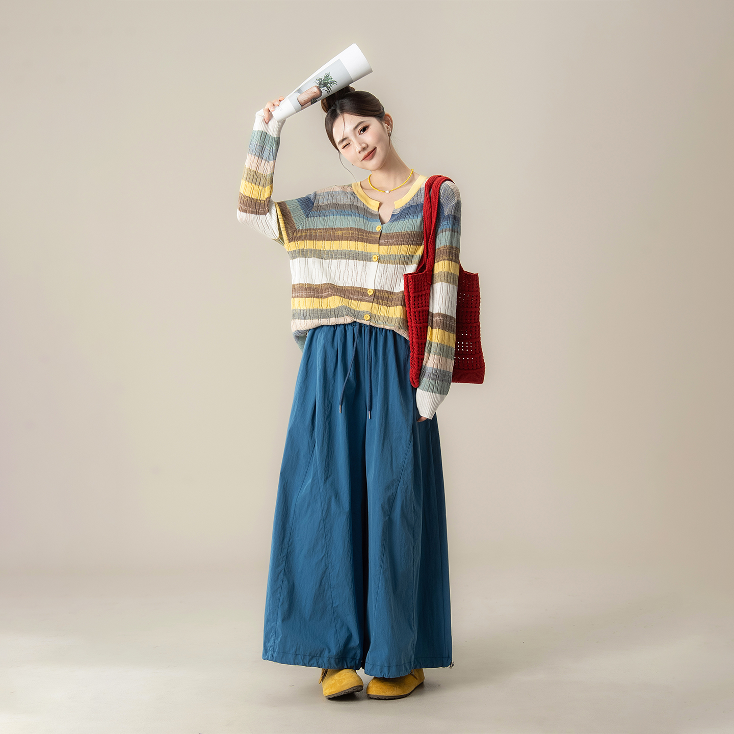 新款 女秋季 小众镂空设计感上衣 针织衫 多巴胺穿搭条纹撞色拼接长袖