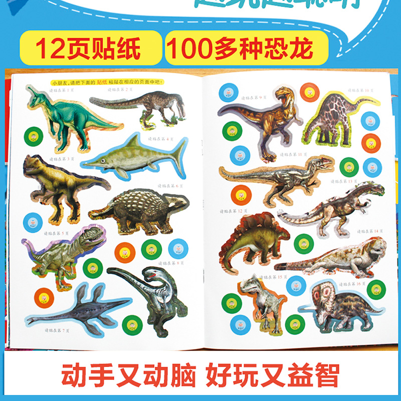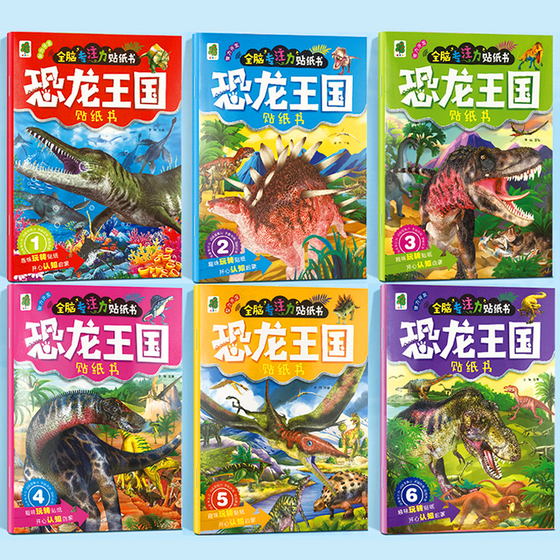 全6册 儿童3到6岁以上宝宝贴贴画幼儿早教启蒙左右脑开发益智游戏书幼儿园中班大班恐龙科普百科贴纸书 恐龙王国全脑专注力贴纸书