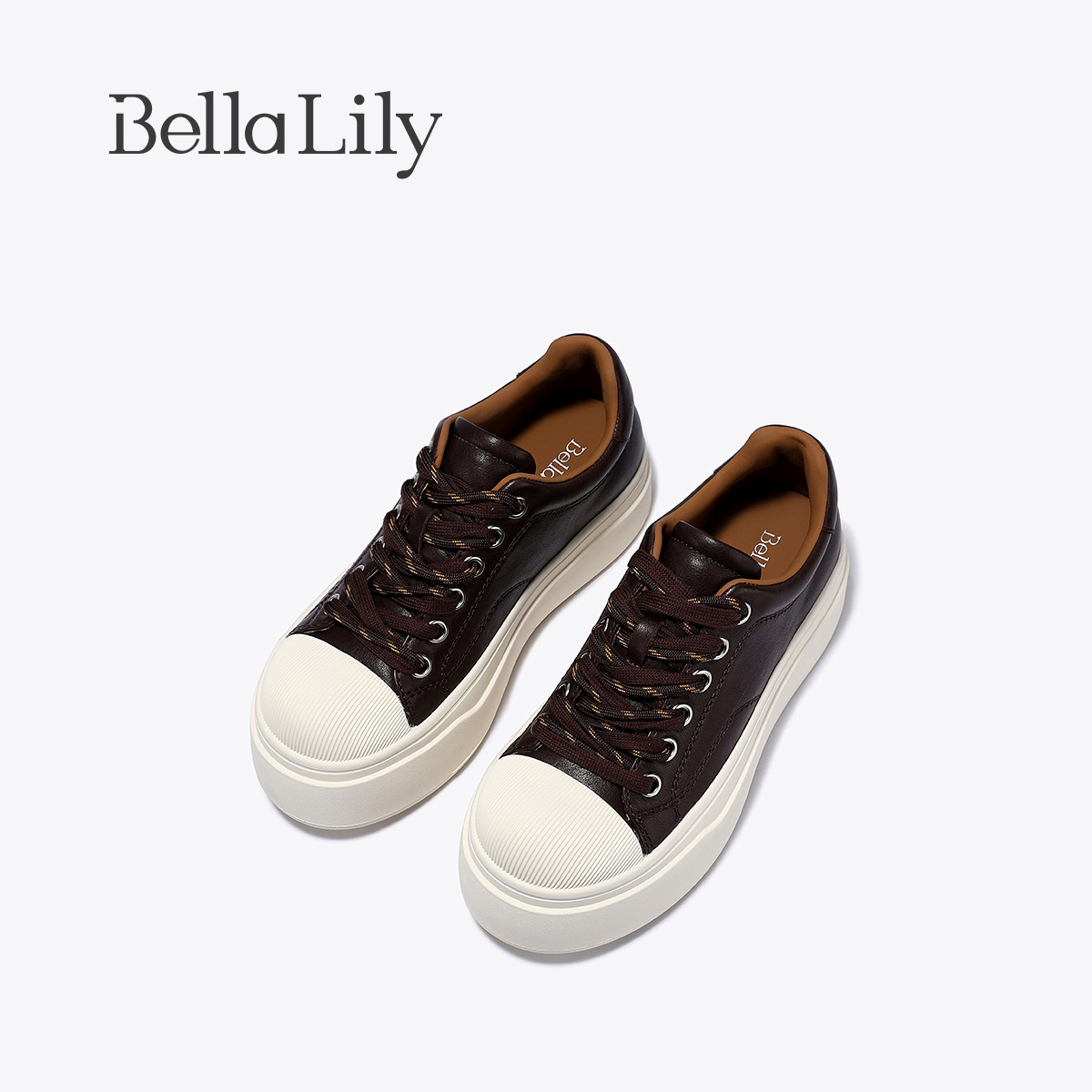 牛皮女鞋 BellaLily2025秋季 女舒适大头鞋 贝壳头厚底增高板鞋 新款