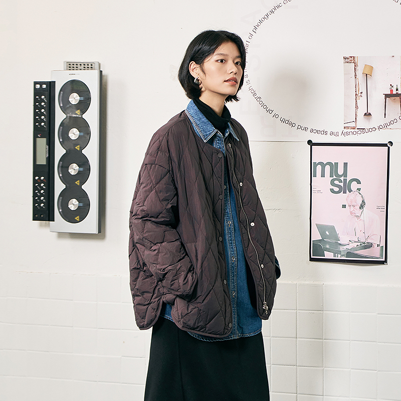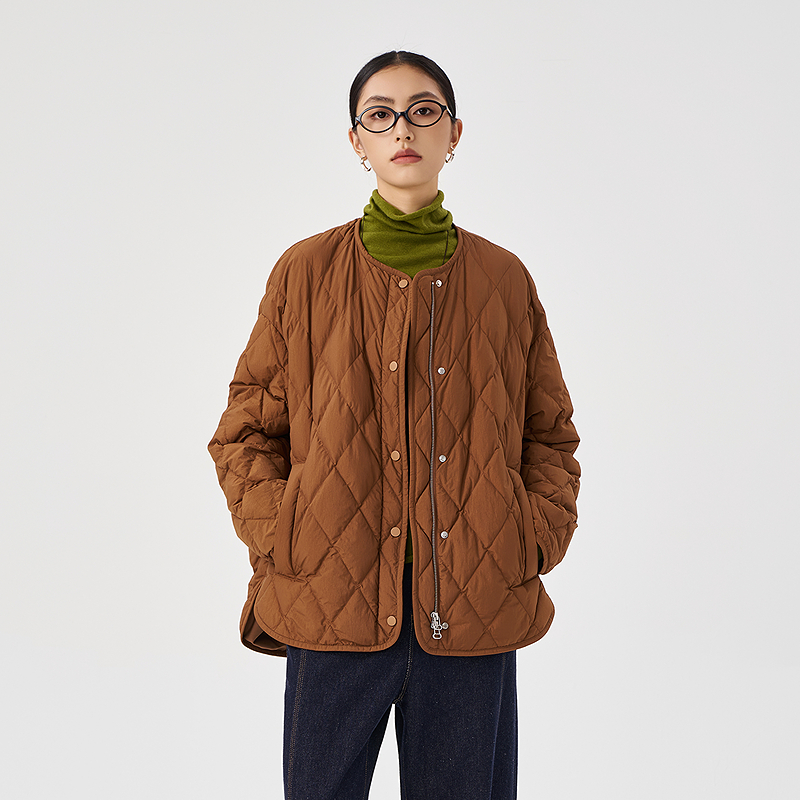 鹅绒外套 宽松H型无领菱形格羽绒服女下摆开叉短款 OTT2025冬季 新品
