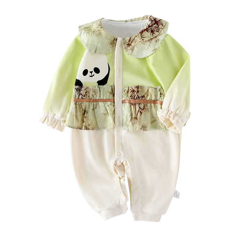 新国风婴幼儿哈衣潮萌 双层爬服小熊猫韩版 春秋宝宝连体衣韩版 时尚