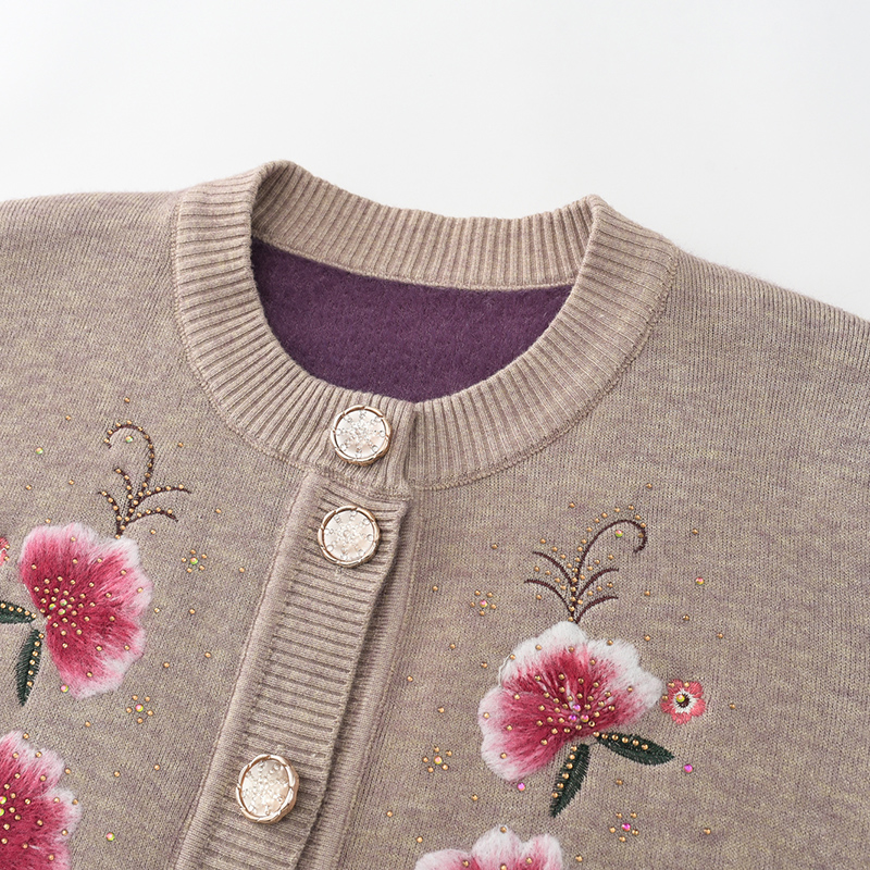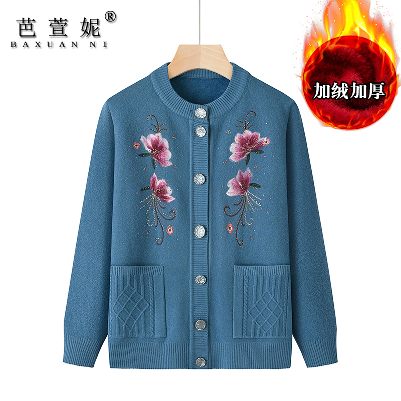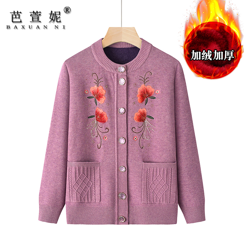 一体绒开衫 加绒加厚毛衣外套女70岁80奶奶装 妈妈装 本命年喜庆大码