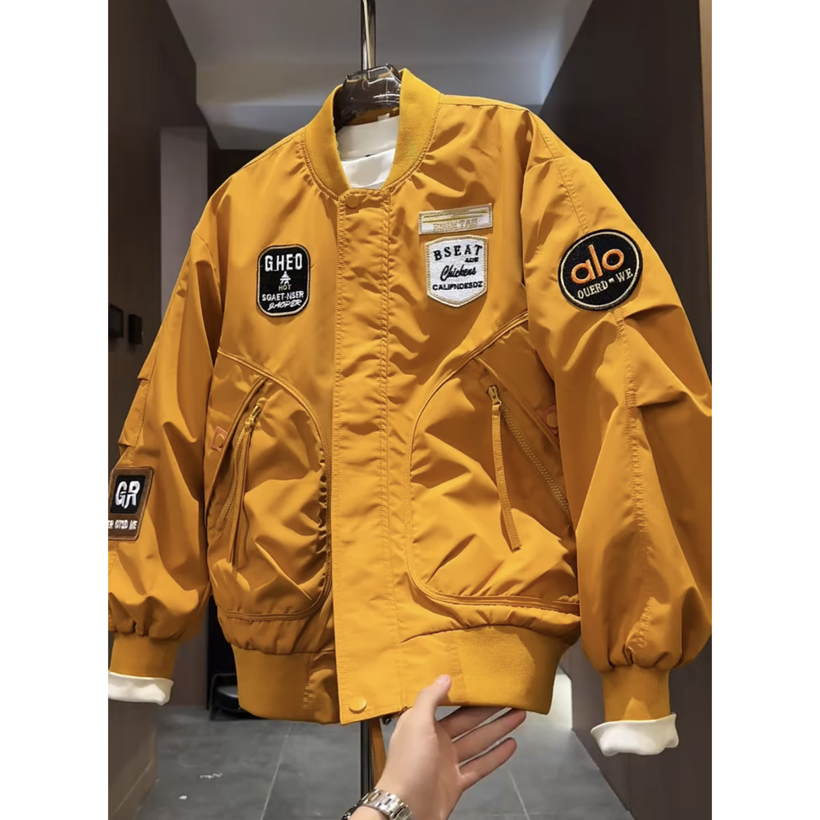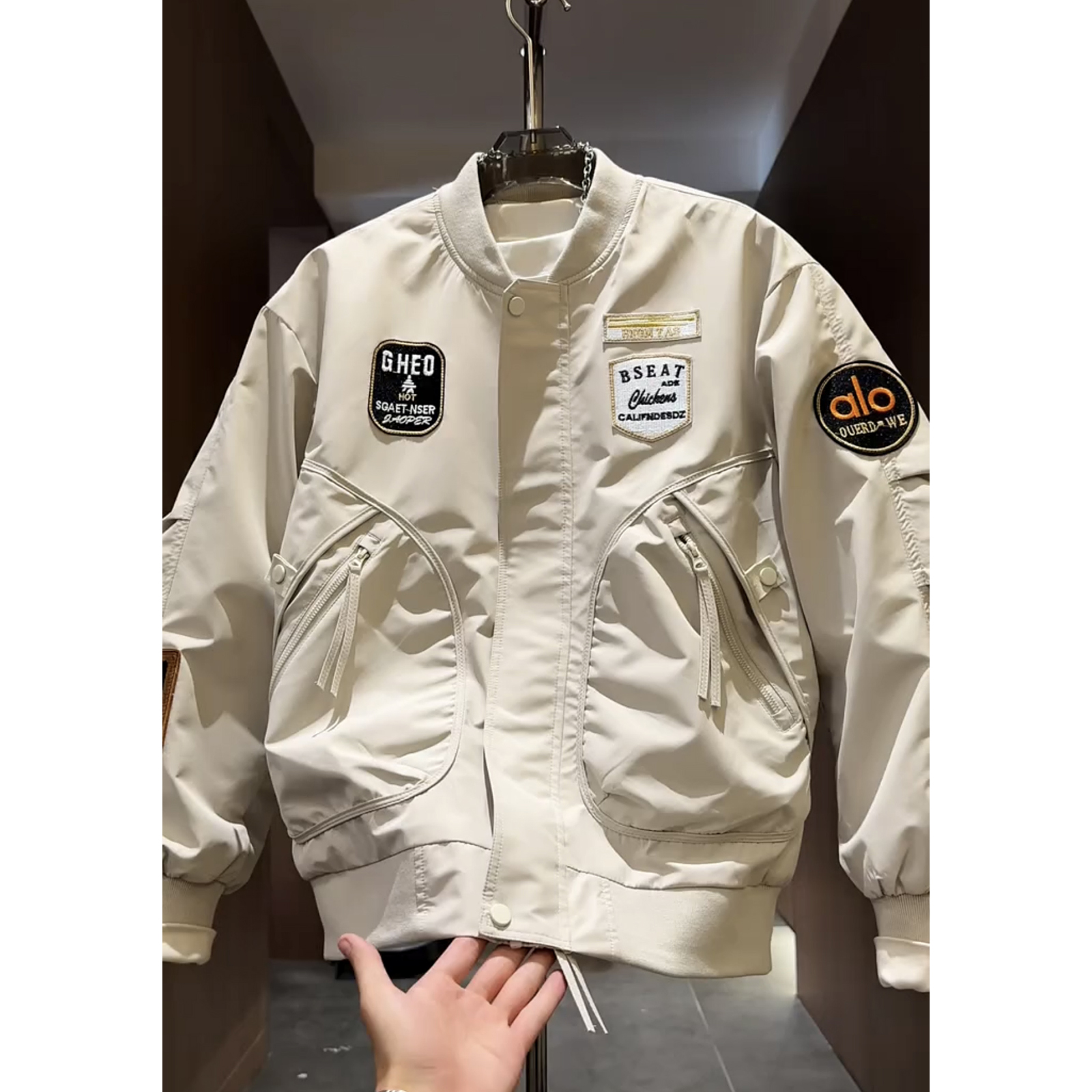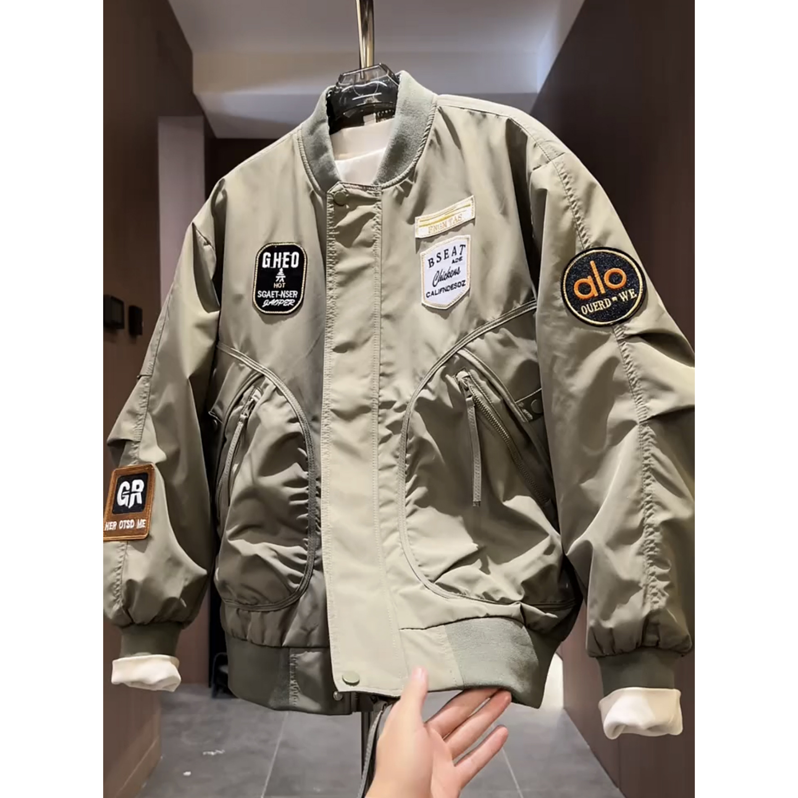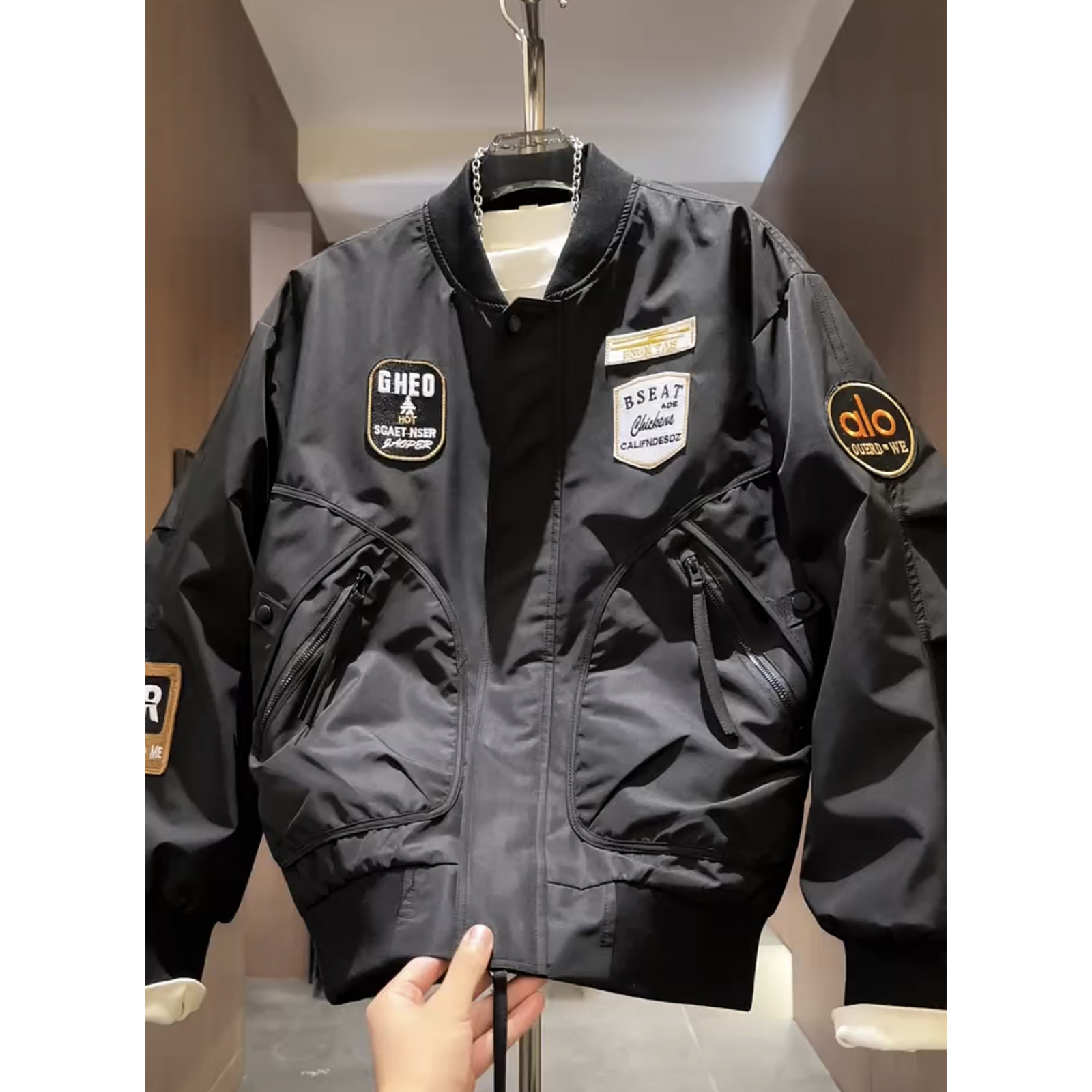 痞帅贴布刺绣棒球服外套 新款 潮牌立领休闲户外工装 夹克男2025秋季