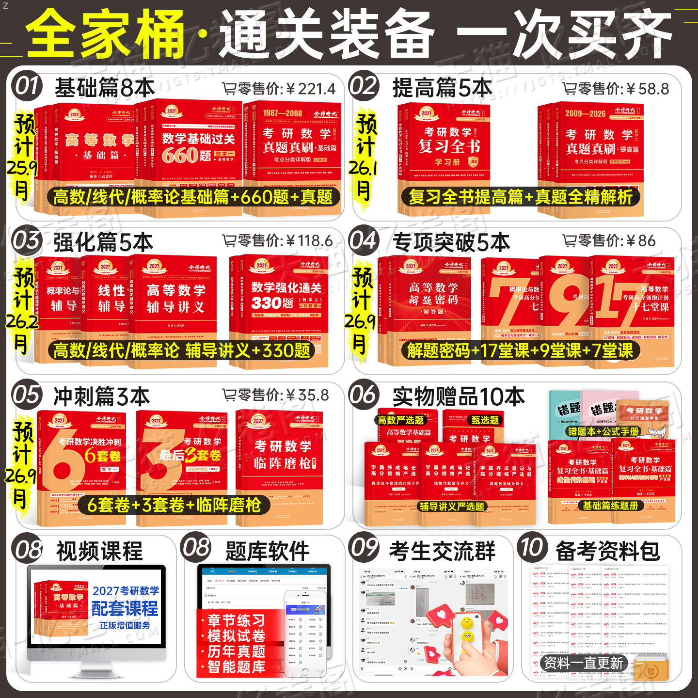 2027年考研数学武忠祥李永乐全家桶高数基础篇辅导讲义27高等数一线性代数二复习全书三强化严选题2026线代660概率论330真题真刷26