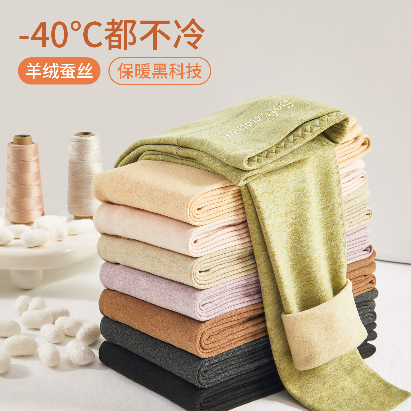 发热蚕丝打底裤 鸭鸭德绒保暖裤 加绒高腰线裤 秋裤 女士内穿紧身冬季