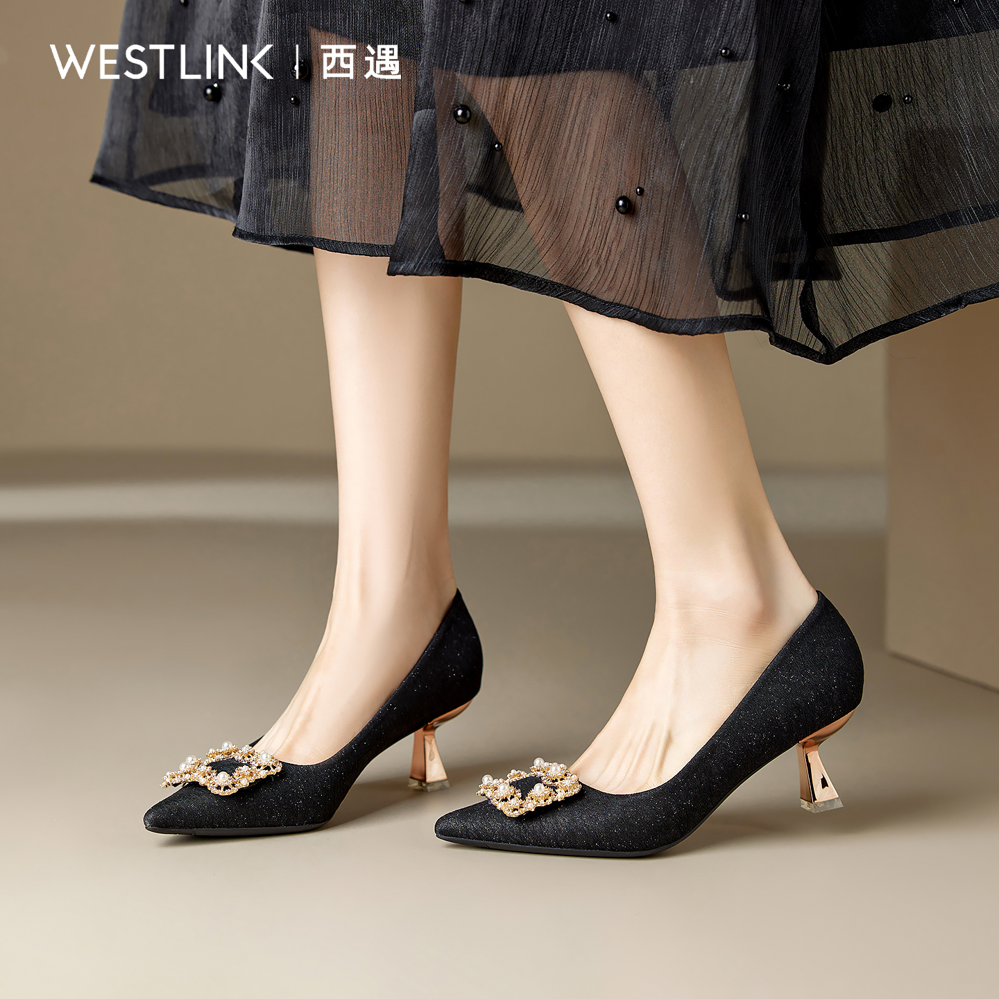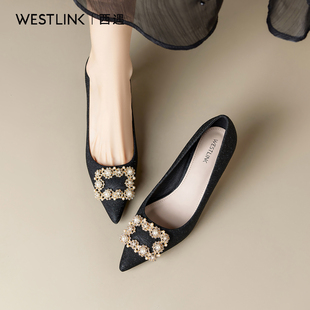 大女主 婚鞋 百思图25秋新款 尖头女浅口单鞋 裸色高跟鞋 双11预售