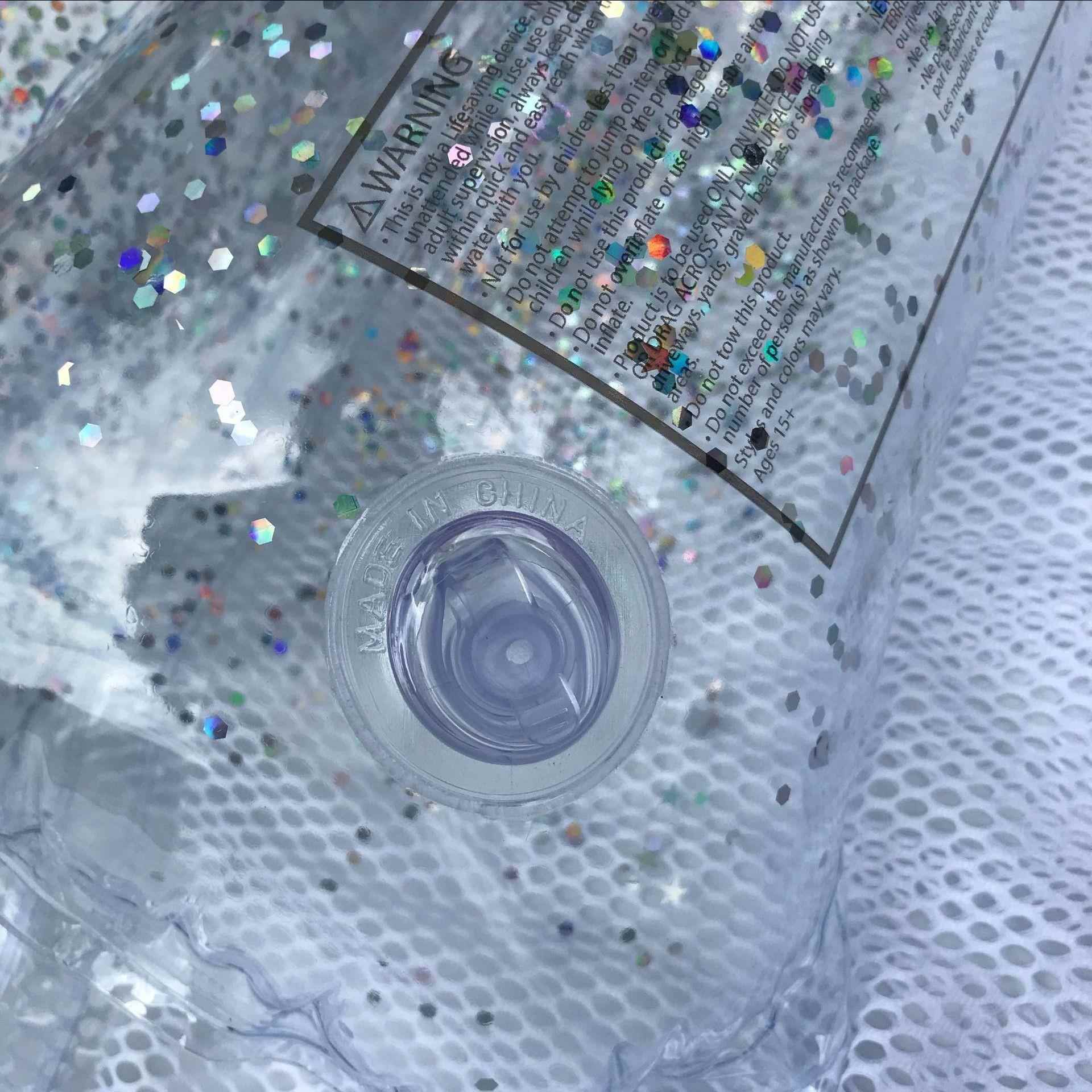 工厂热销PVC水上透明躺椅 可折叠充气吊床带亮片浮排成人躺椅