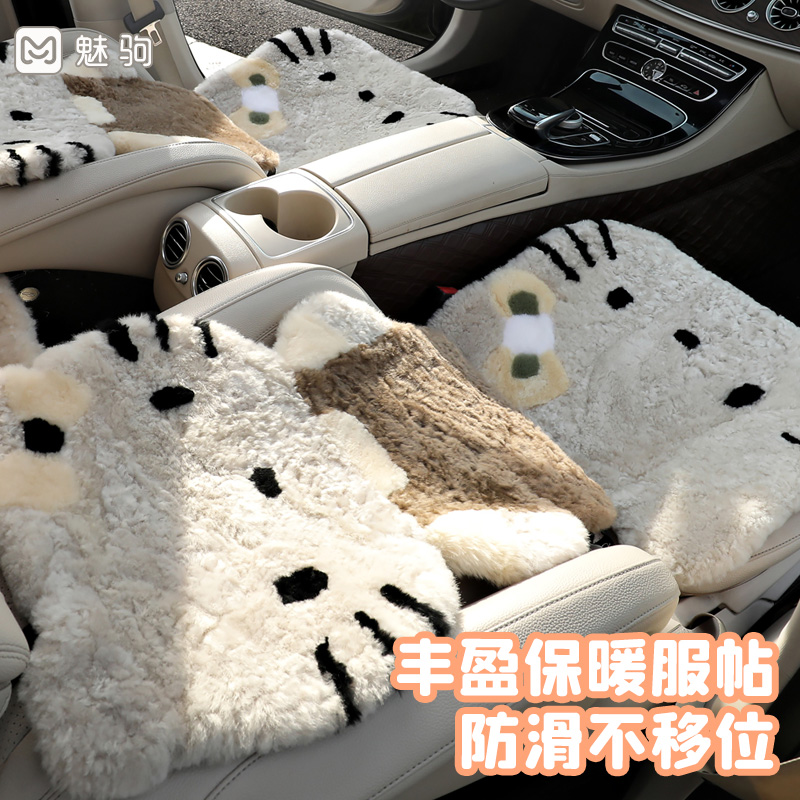 纯羊毛汽车坐垫冬季 毛绒卡通座垫冬天保暖可爱女士皮毛一体车垫