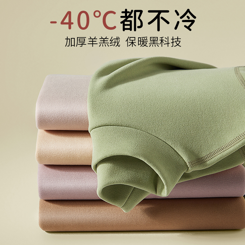女 内衣羊毛秋衣秋裤 肖战同款 小黑猫猫人倍暖5.0科技打底保暖套装