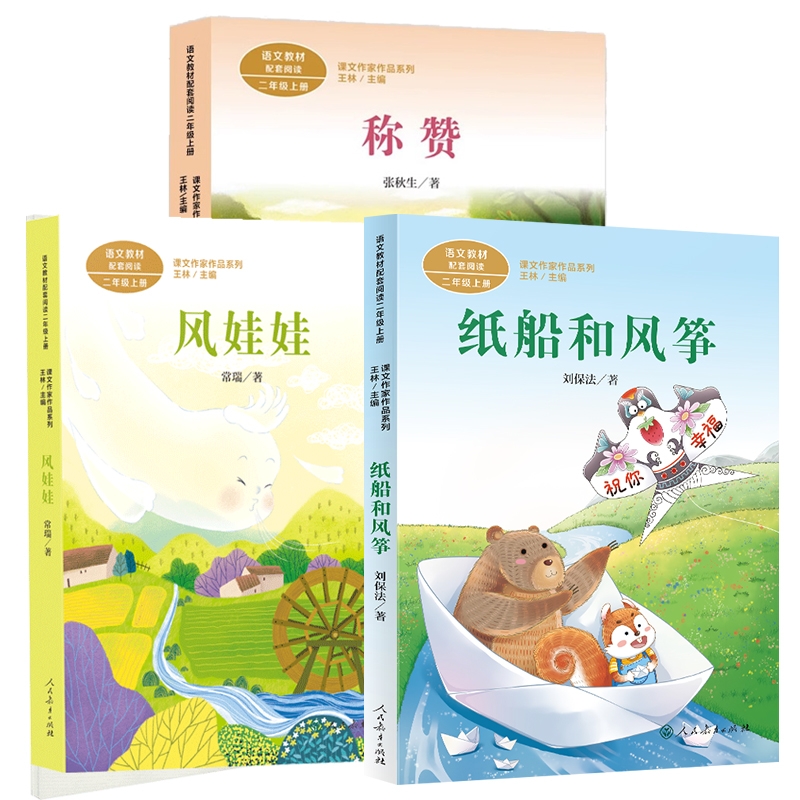 彩图注音版 人教版 二年级上册课外书必读配套阅读人民教育出版 全套3册纸船和风筝 阅读正版 称赞 社带拼音儿童读物暑假推荐 风娃娃