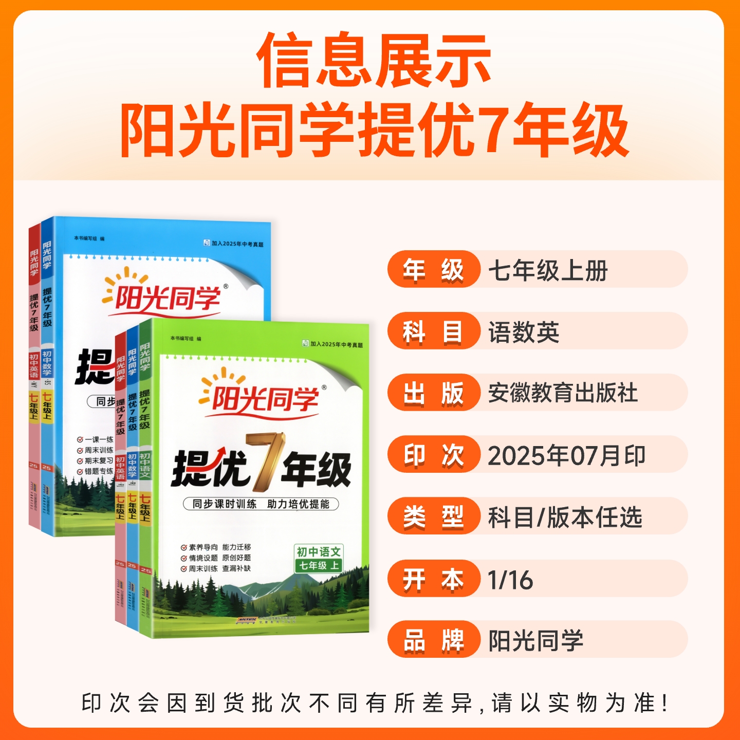 外研同步课时训练作业初中7上同步练习册一课一练习册教辅资料 北师大版 2025秋新版 阳光同学提优训练七年级上册语文数学英语人教版
