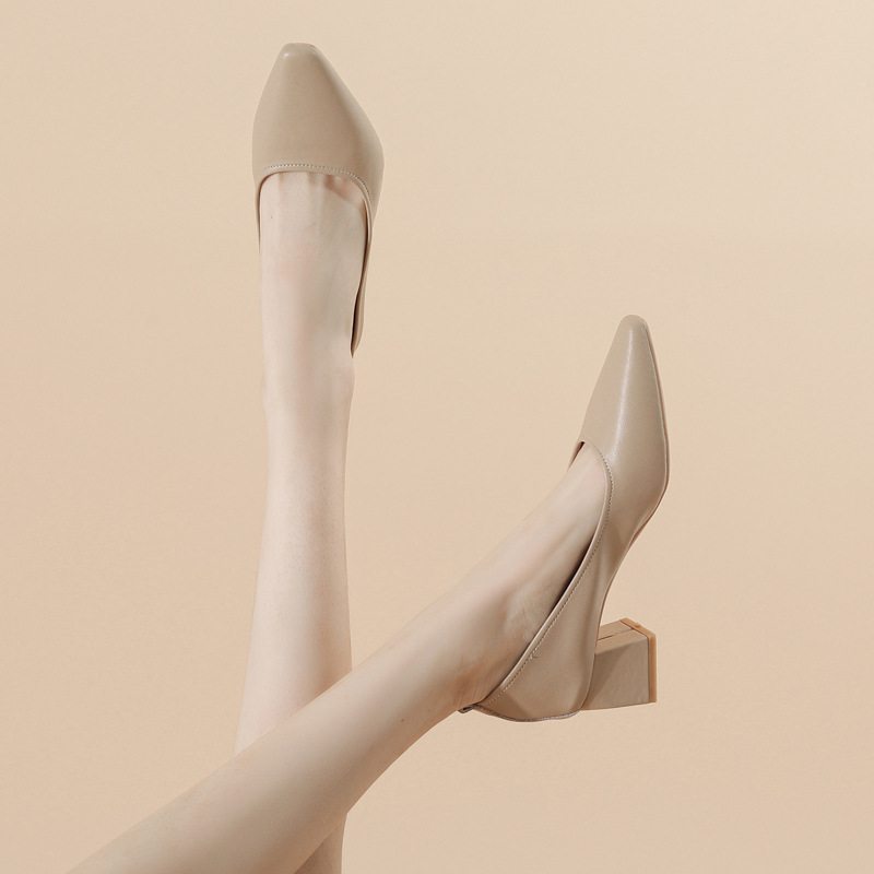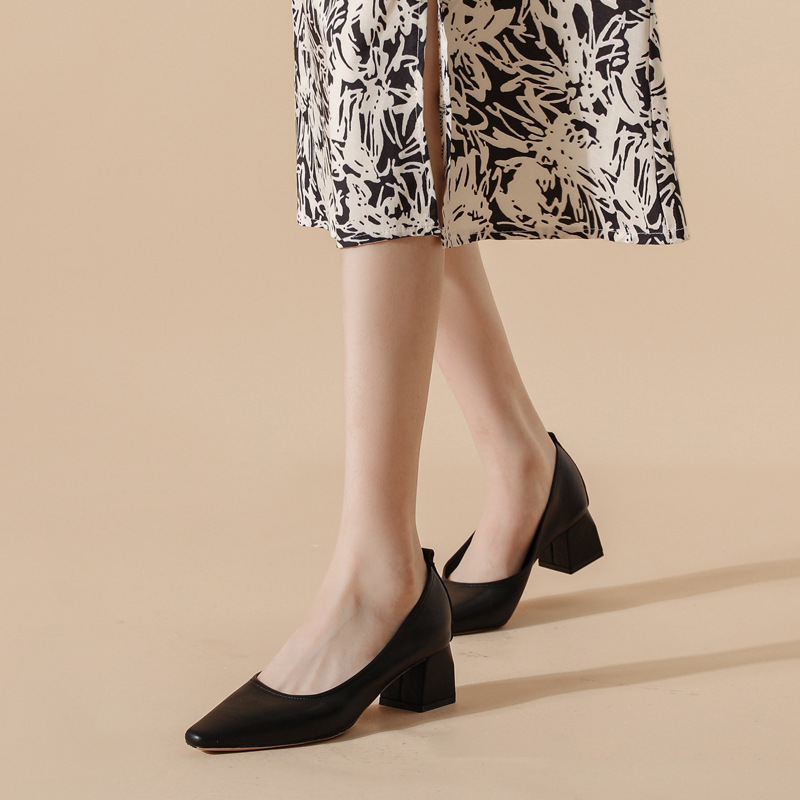 单鞋 真皮方头粗跟高跟鞋 2025新款 5CM增高妈妈鞋 软皮工作通勤女鞋