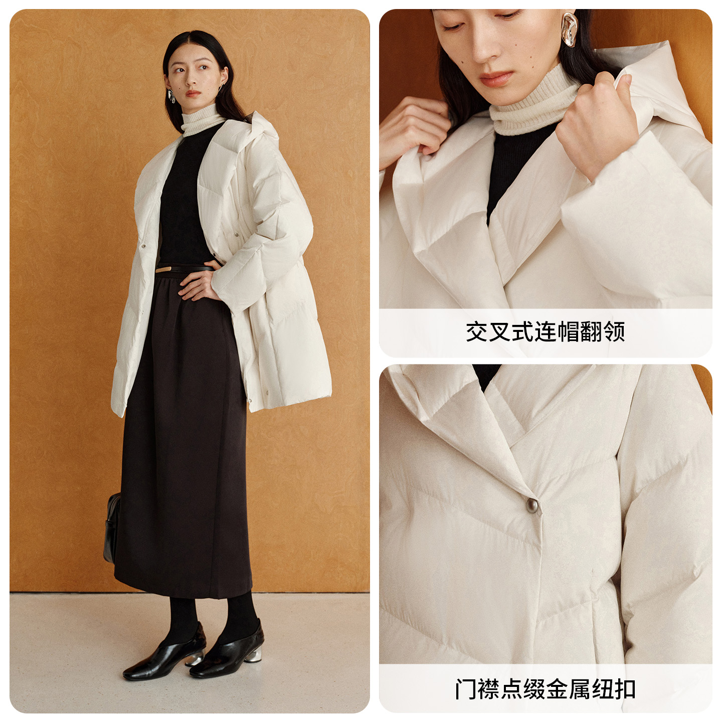 韩国大口袋连帽长款 宽松百搭加厚白鸭绒外套 羽绒服女冬2025年新款