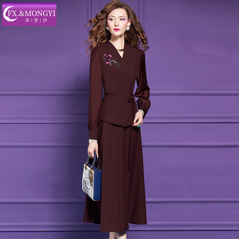 设计感收腰气质上衣职业半裙两件套 女秋季 菲梦伊钉珠绣花西装 套装