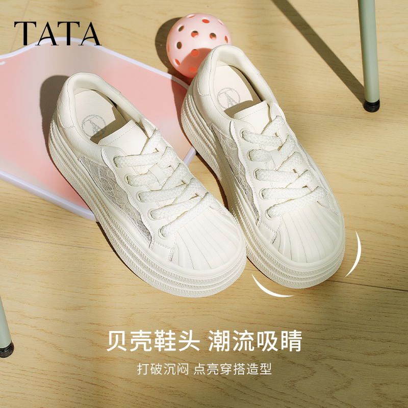 CT903BM5 2025秋新款 TATA他她厚底休闲板鞋 女网面透气贝壳头小白鞋