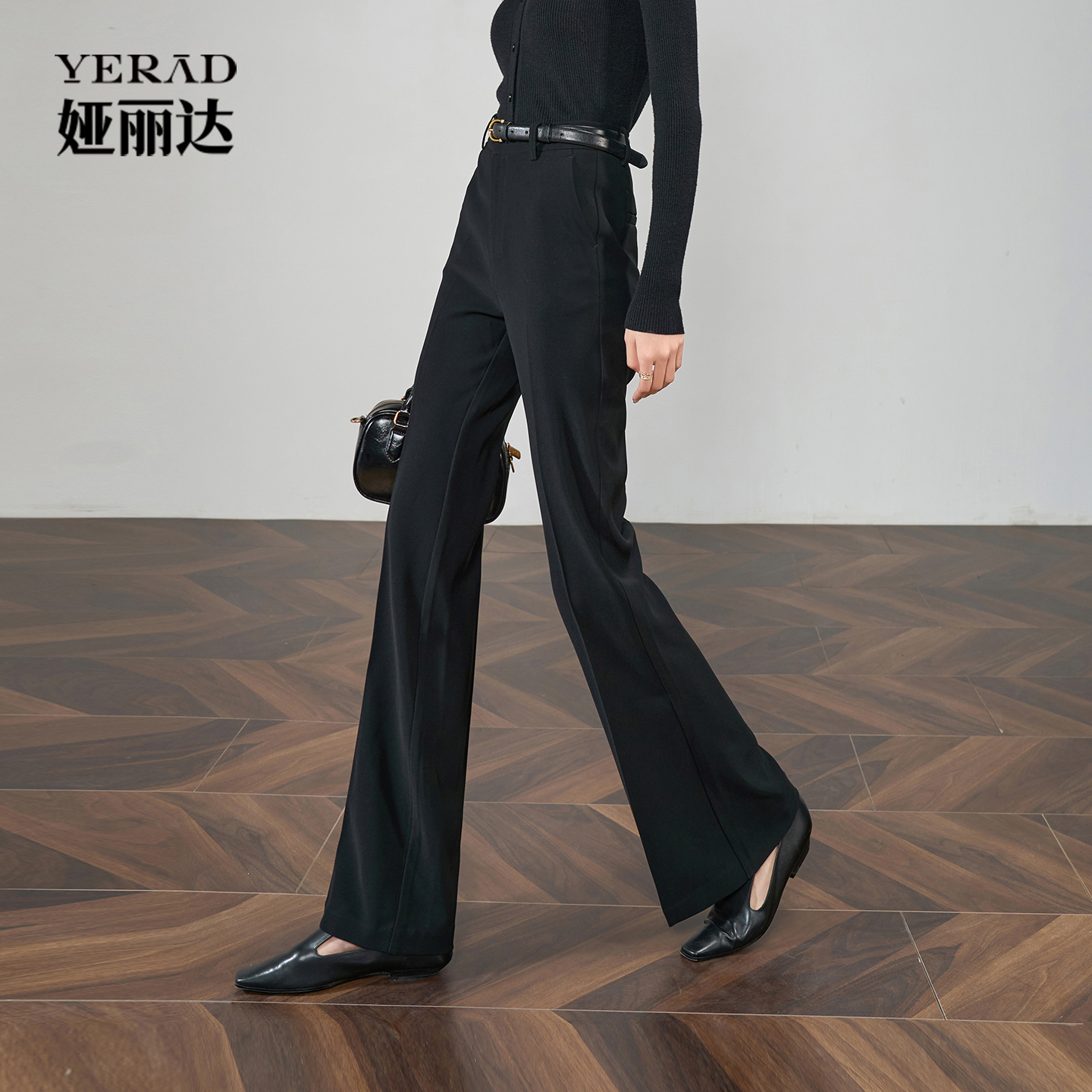 女宽松显瘦裤 长裤 子2025秋季 拖地休闲黑色喇叭裤 新款 娅丽达微喇裤
