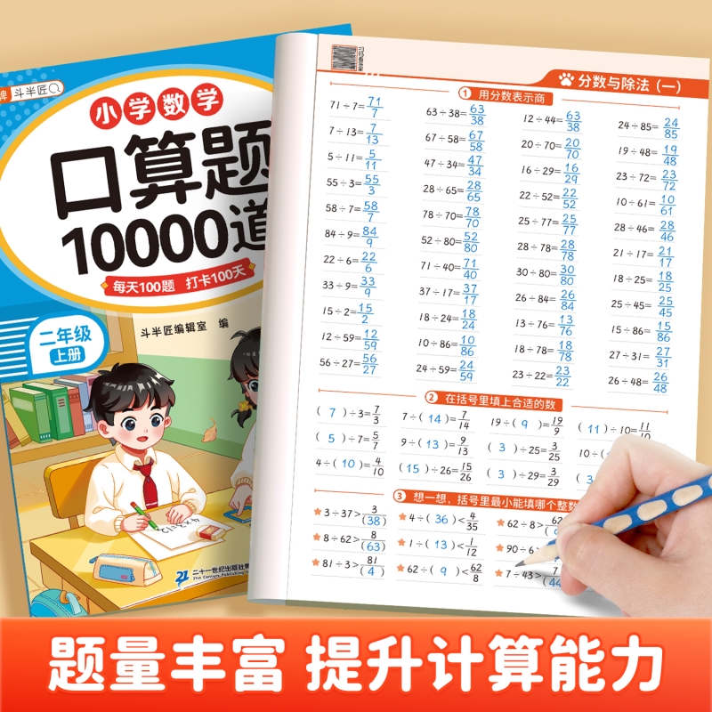 斗半匠二年级口算天天练上册 北师苏教乘除法练习口算题卡10000道强化训练 一年级小学数学口算题每日一练三四五六年级下册人教版