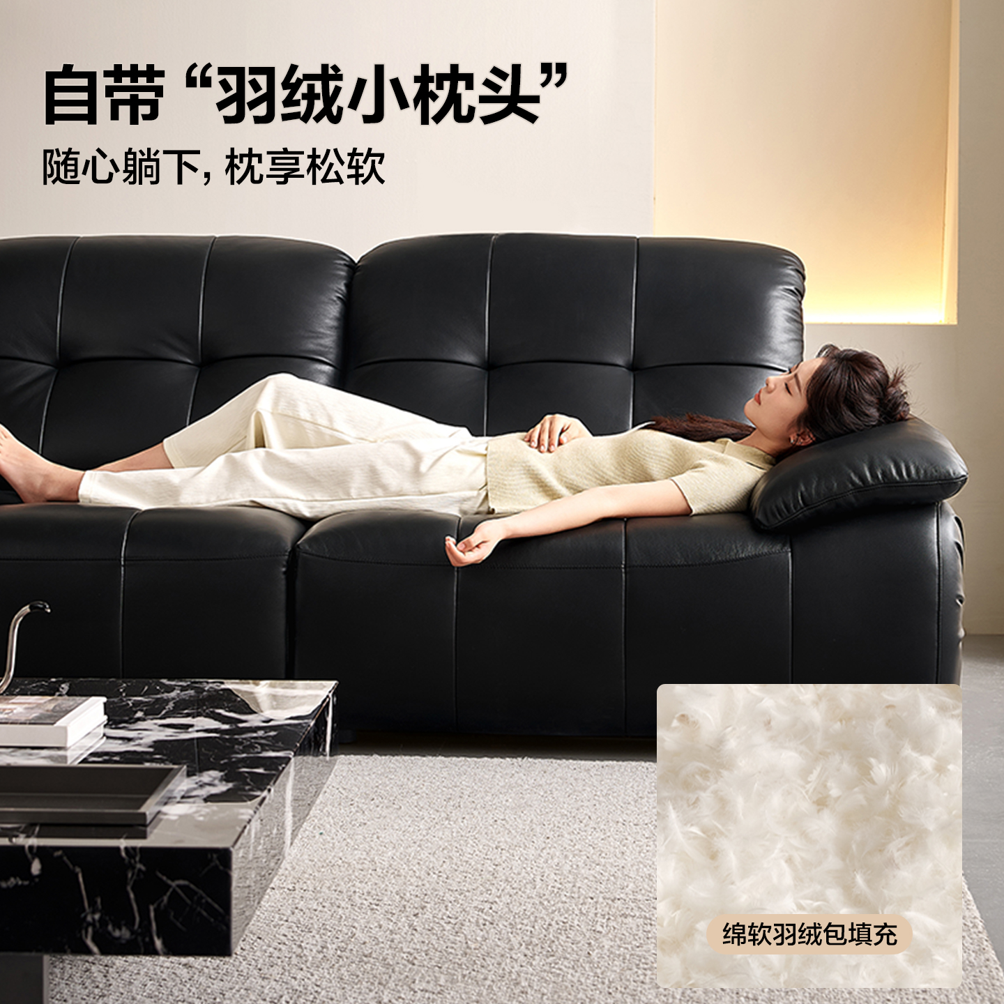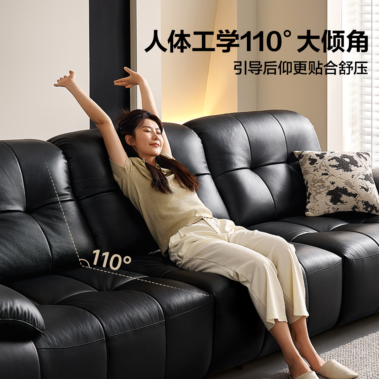 政府补贴全友家居意式 极简头层牛皮真皮沙发复古风客厅黑色直排