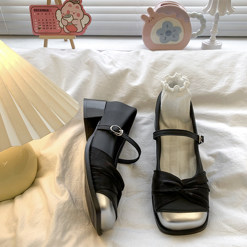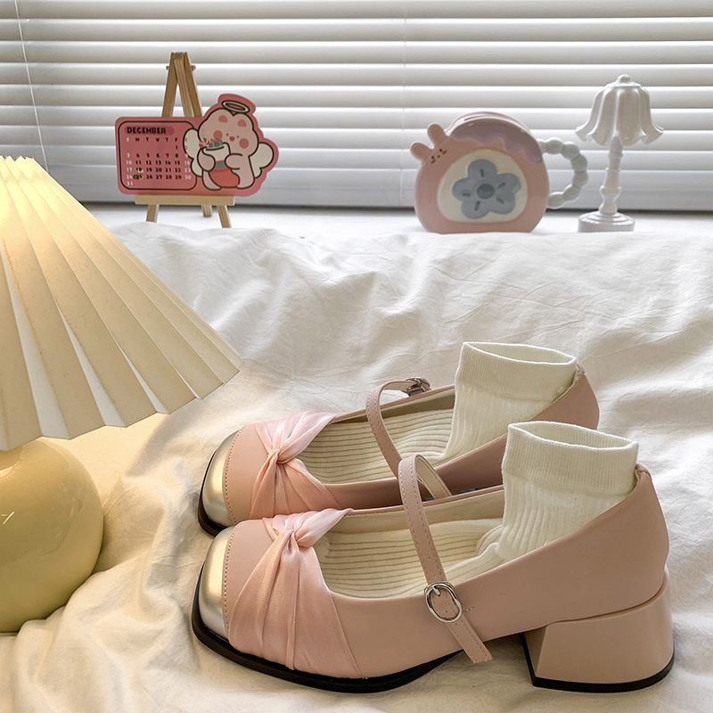 粗跟配裙子玛丽珍小皮鞋 法式 女2025春夏新款 温柔仙女风浅口高跟鞋