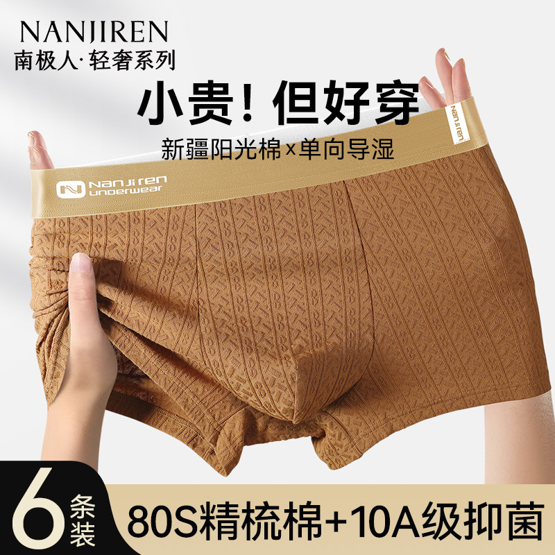 男士 2025新款 冰丝男生四角平角短裤 男款 头纯棉裆夏薄款 南极人内裤