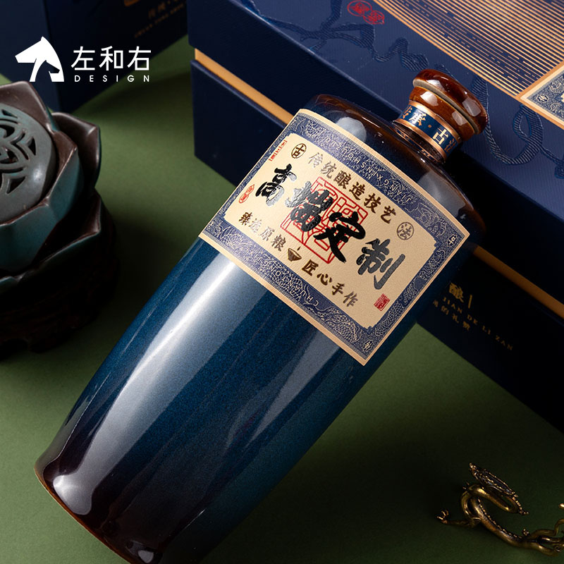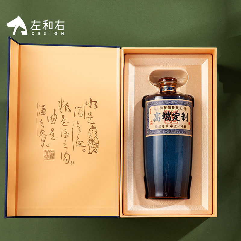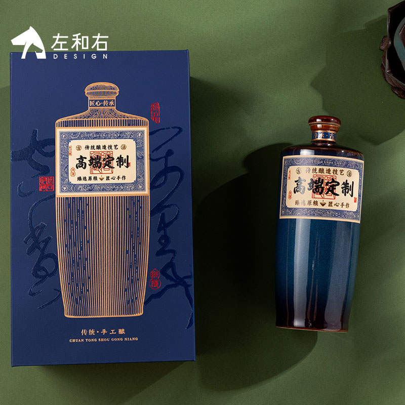 左和右白酒包装 盒 高端蓝色白酒酒瓶空瓶私人定制复古酒瓶白酒包装
