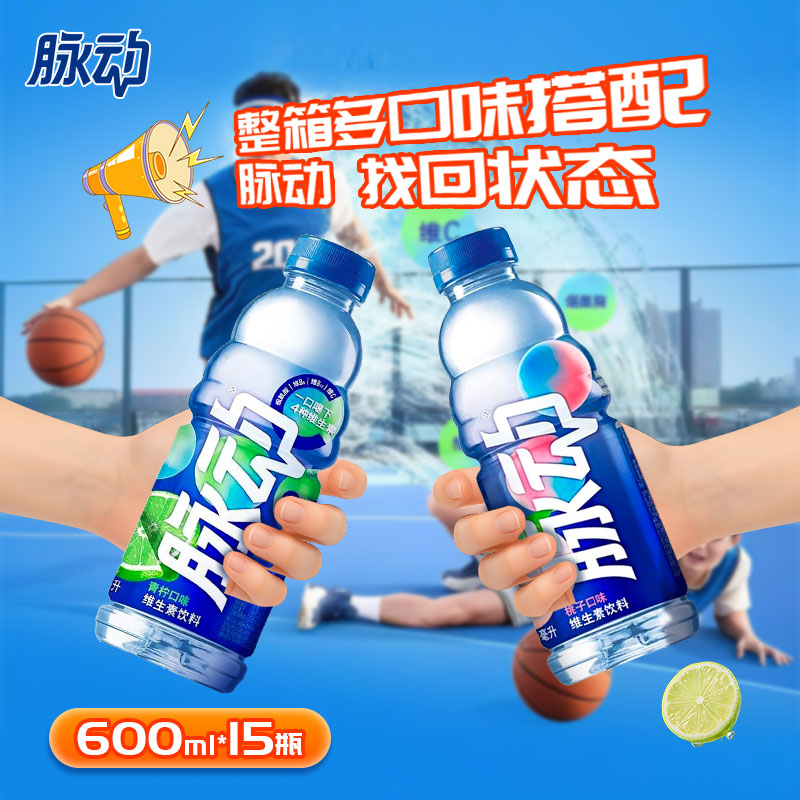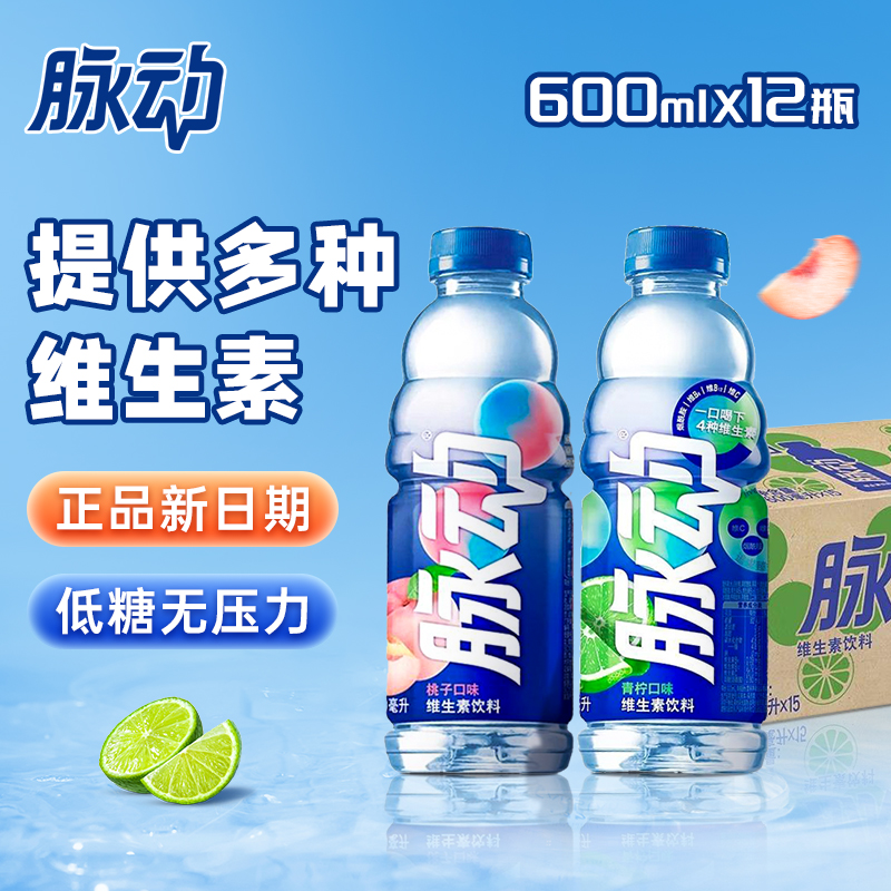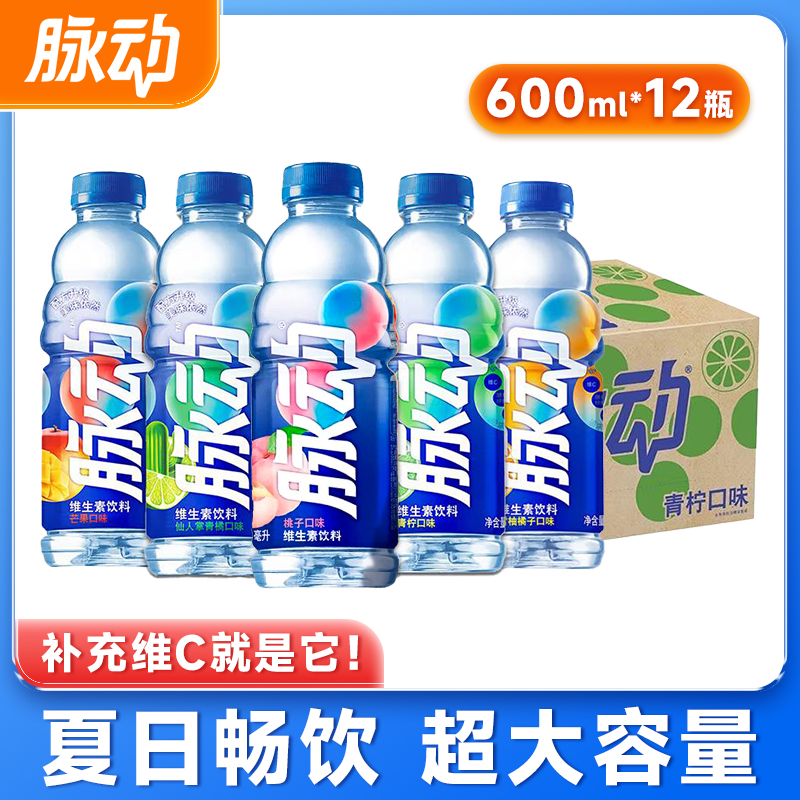 脉动维生素饮料600ml 运动补水 15瓶整箱青柠蜜桃大瓶牛饮家庭装