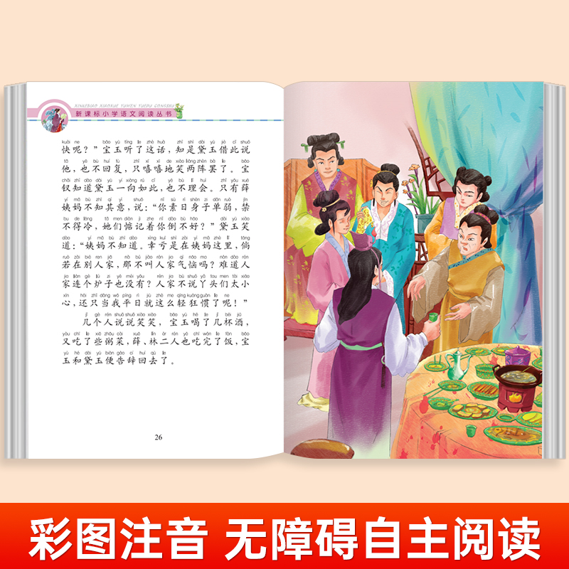 书目正版 红楼梦 低年级读物一二年级课外书小学生必课外阅读书籍带拼音儿童文学寒暑假推荐 彩图注音版 四大名著之一小学语文经典