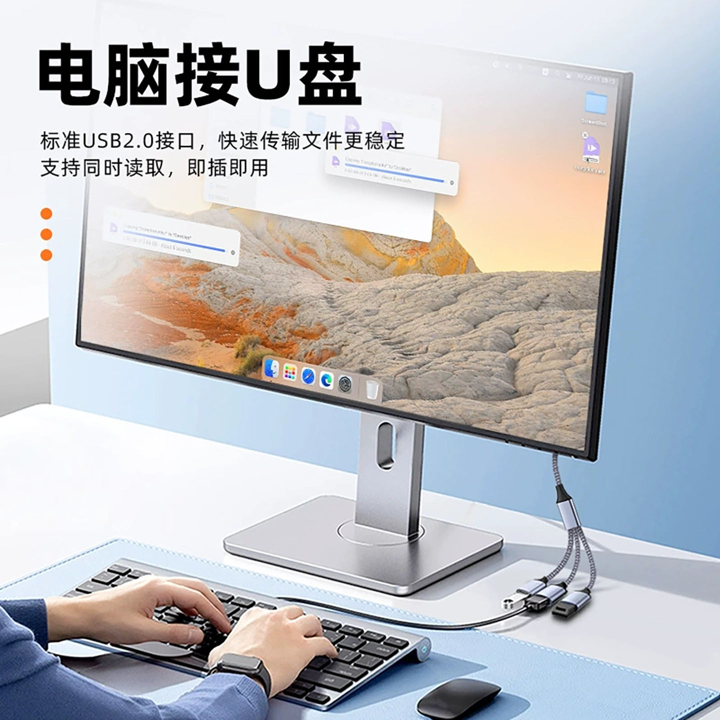usb扩展器充电分线器typec拓展坞插头接U盘键盘鼠标一分三多口hub笔记本电脑ubs1拖3转接头加长供电延长