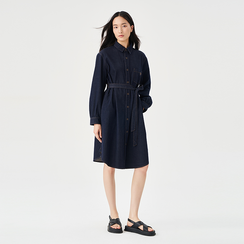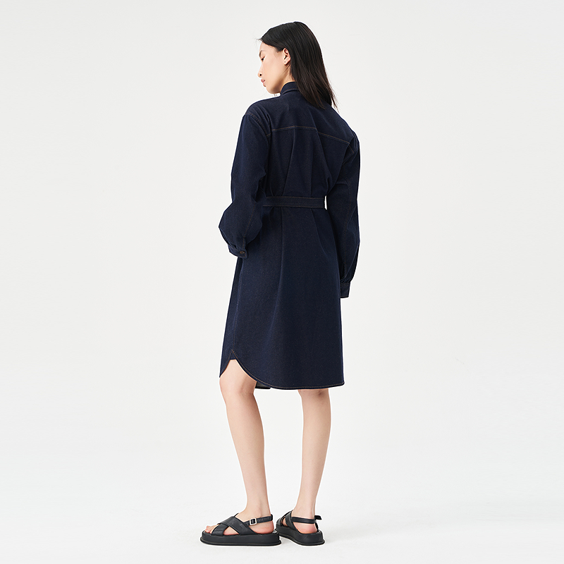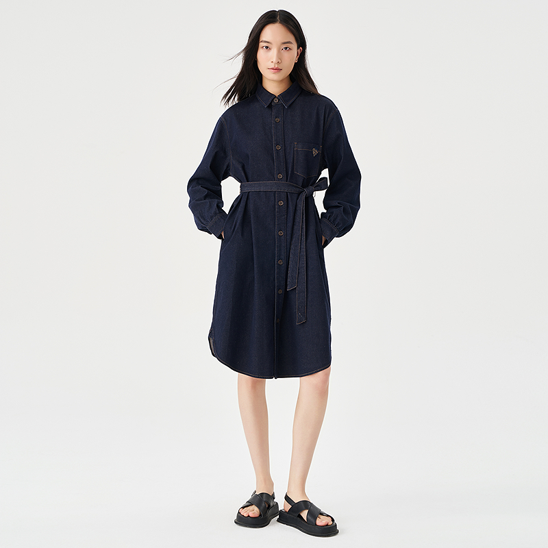 修身 衣纱布菲闻山2025秋装 连衣裙复古风复古法式 复古牛仔长袖 新款