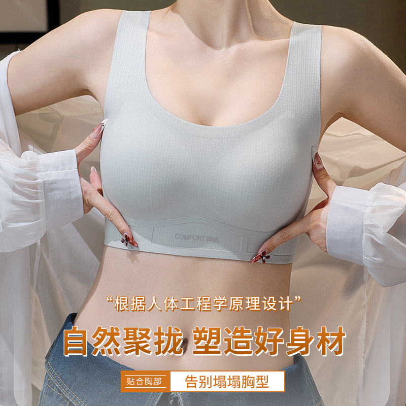 无痕大码 文胸罩 内衣大胸显小防下垂提拉聚拢收副乳上托女胖mm薄款