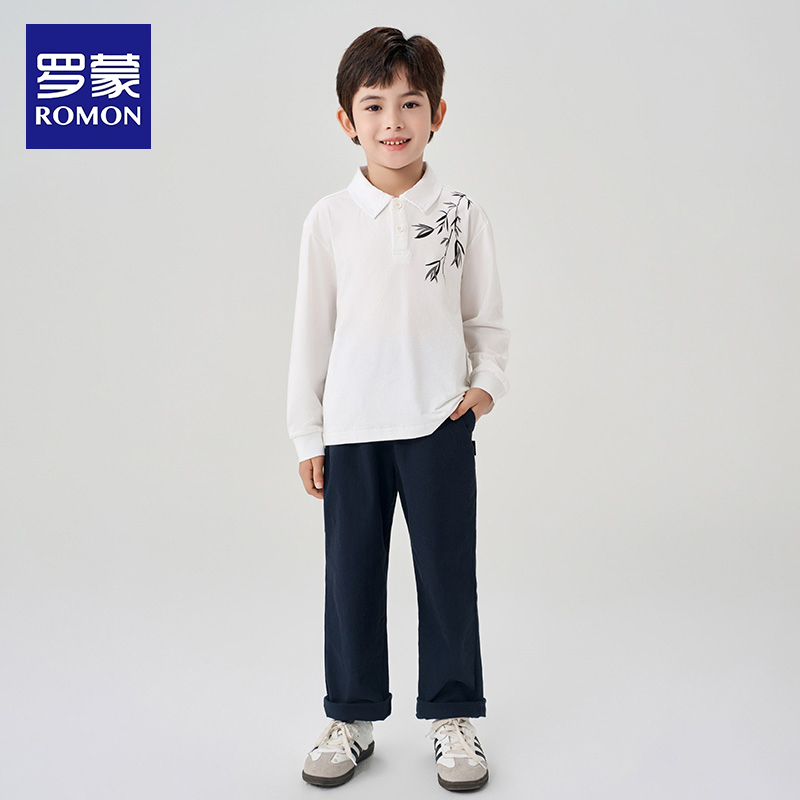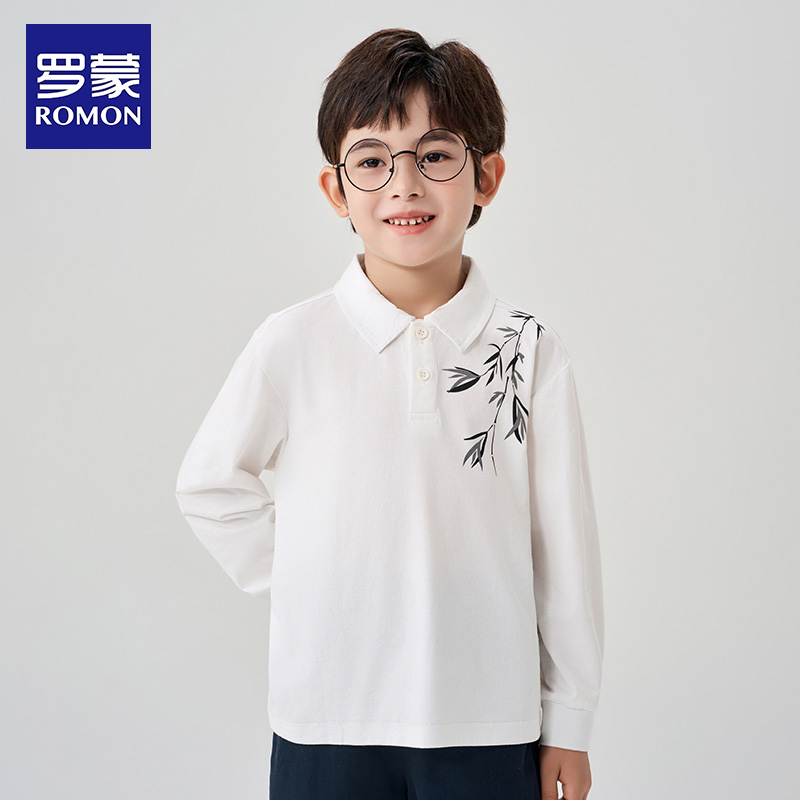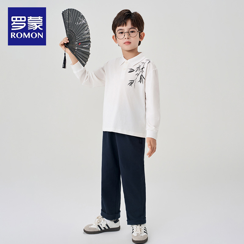 男孩国风墨竹长袖 罗蒙童装 2025春秋新款 polo衫 打底T恤 男童新中式