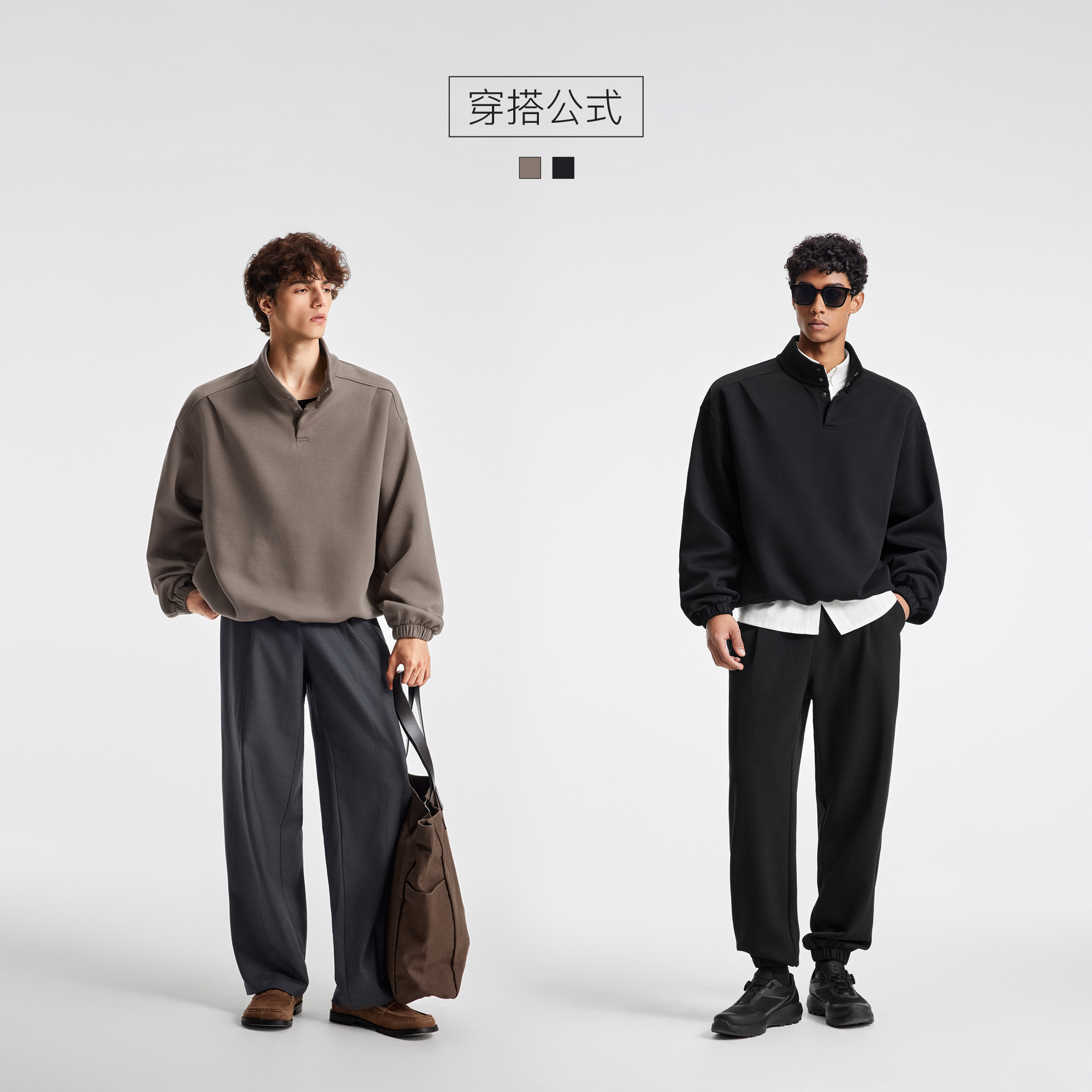 上衣 立领暗扣cleanfit廓形微弹长袖 BODYDREAM BM空气层卫衣男秋季