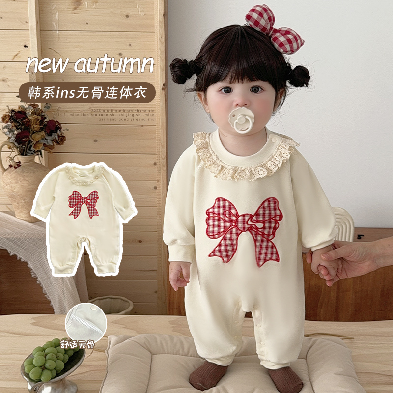 宝宝长袖 哈衣婴儿洋气衣服公主外出连体衣萌蝴蝶结纯棉舒绒哈衣