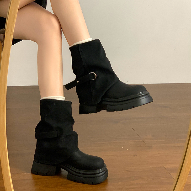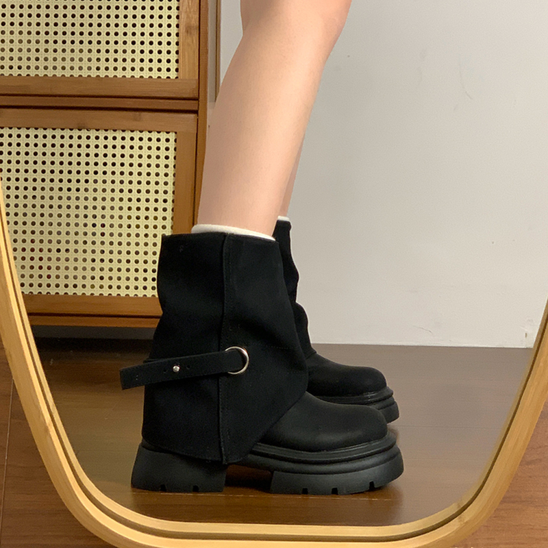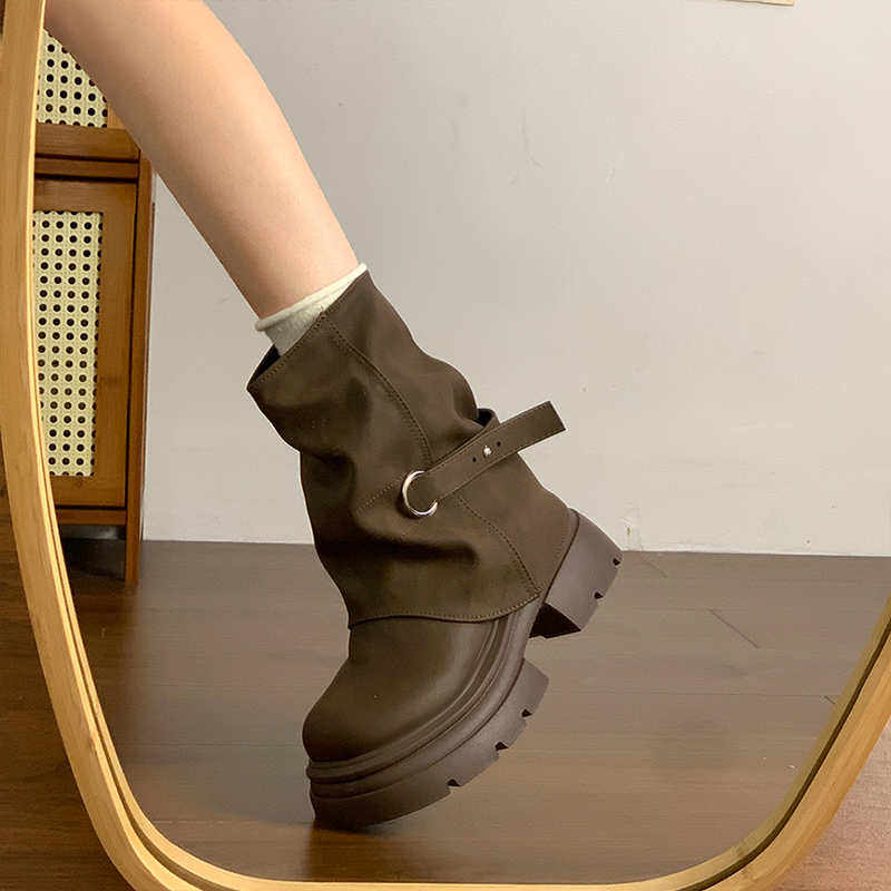 管靴 棕色英伦风复古圆头厚底裤 美拉德短筒马丁靴女2025春秋季 新款