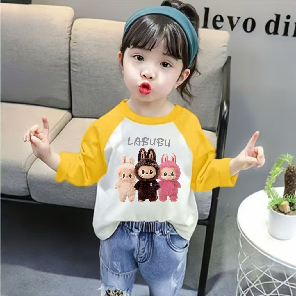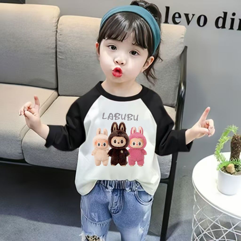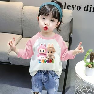 秋装 女童撞色T恤男童打底衫 宝宝长袖 100%纯棉拉布布儿童春秋新款