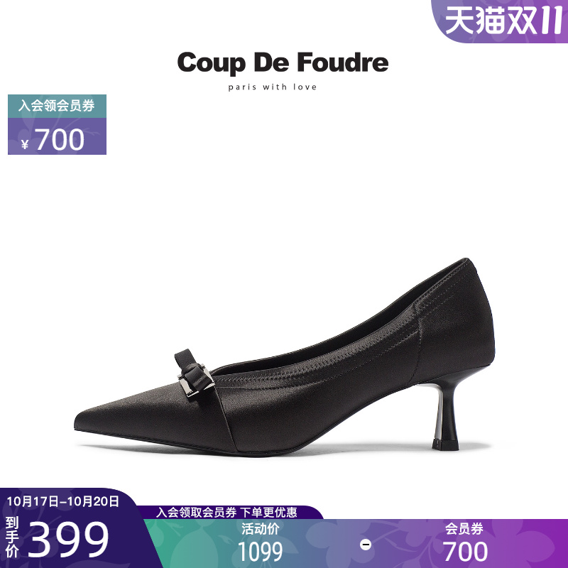 单鞋 羊皮浅口法式 千百度粗高跟鞋 异形跟职业通勤大码 静音系列