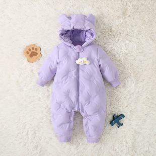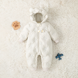 白鹅绒婴儿羽绒连体衣服宝宝保暖爬服男女童冬季 加厚 2025新款