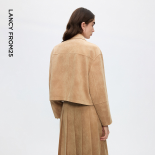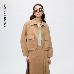 新款 风上衣2025年冬季 复古翻领夹克短外套女工装 朗姿巴恩风长袖