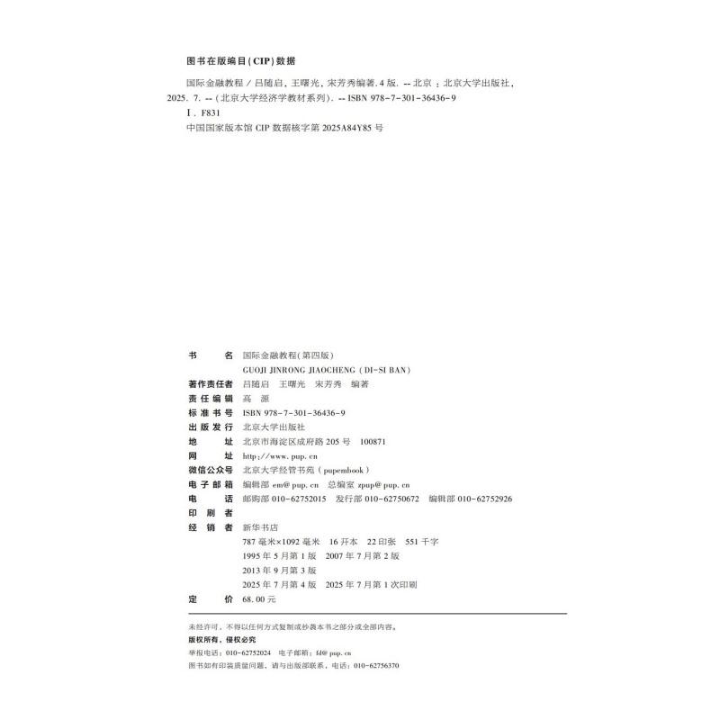吕随启 王曙光 宋芳秀 正版 北京大学出版 国际金融教程第四版 北京大学经济学教材系列 社9787301364369 2025新书