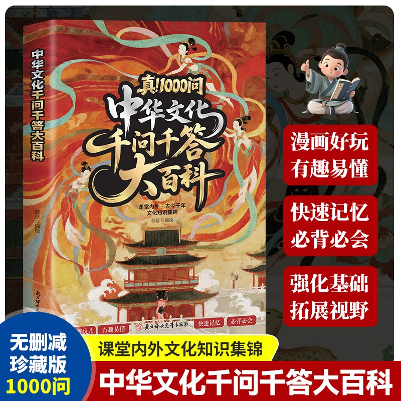 抖音同款 现货速发真1000问中华文化千问千答大百科常识漫画图解有趣易懂传统文化历史初中生小学生课外必备背世界百科大全正版