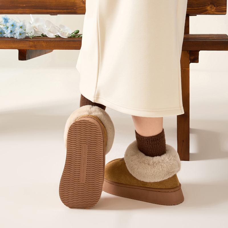 加绒保暖外穿舒适室内家居毛绒绒防滑棉鞋 2025新款 冬季 雪地靴女款