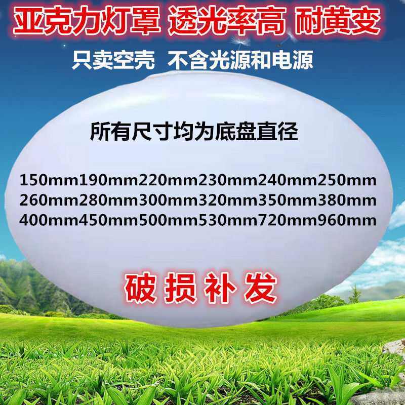 LED全白亚克力灯罩面包灯配件圆形面罩外壳罩卡扣式 吸顶灯罩167