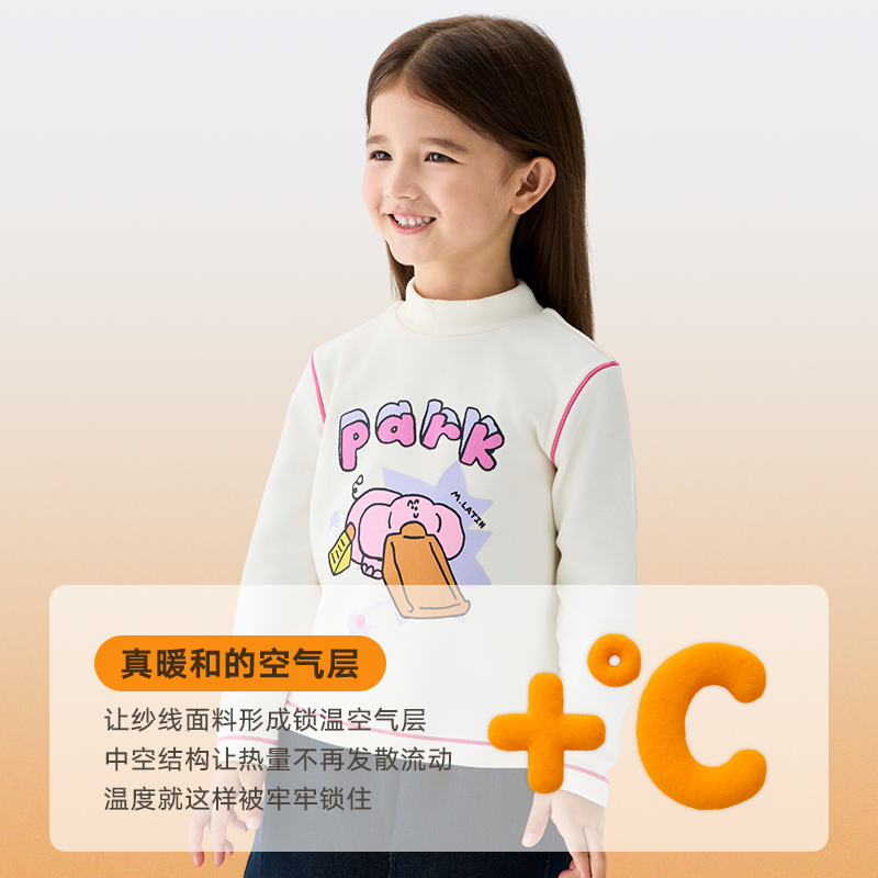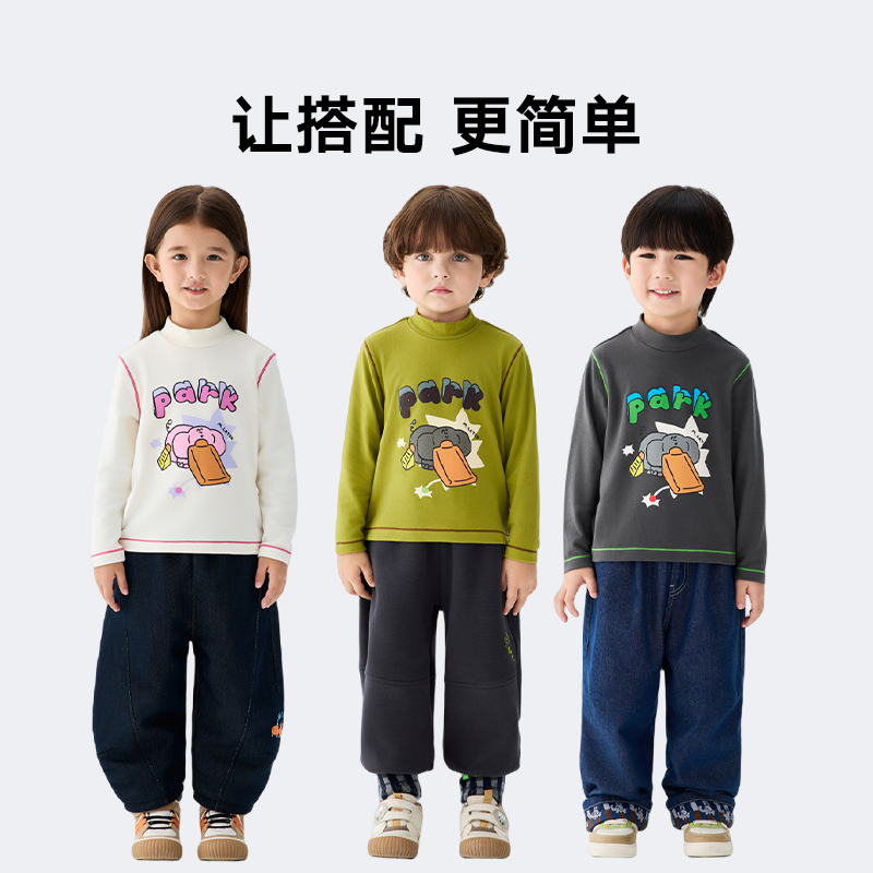 马拉丁儿童T恤25冬装 男童女童小童弹力绷缝德绒半高领T恤 新款