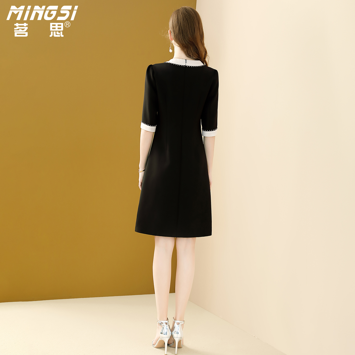 茗思高级感钉珠撞色连衣裙女2025早秋新款 裙子 气质宽松显瘦中长款