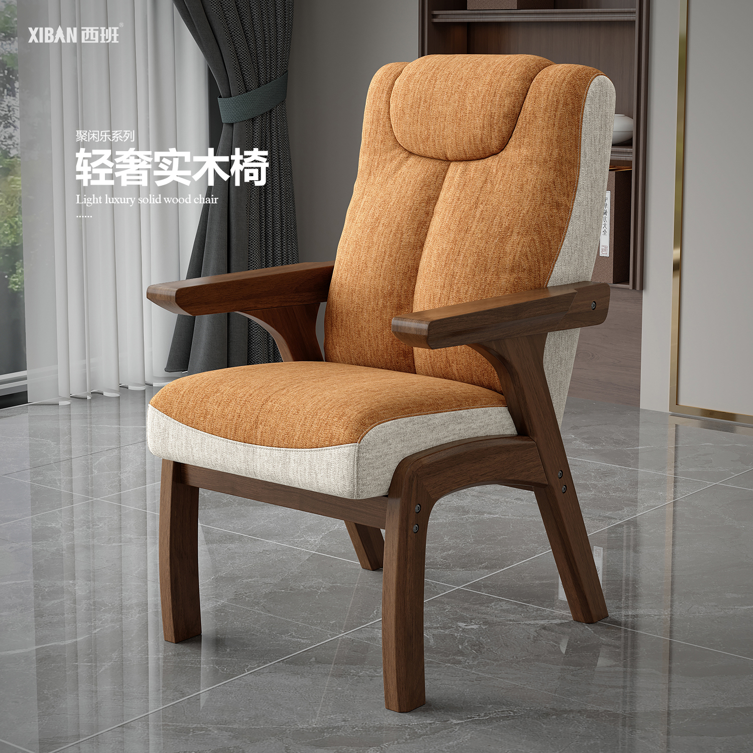 高档全实木单椅适用于棋牌商务会所休闲会客茶楼酒店家用椅子